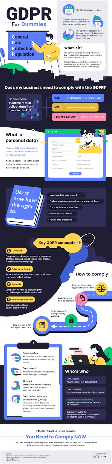 Good news: We’ve compiled the essential parts of this GDPR guide for dummies into an easily shareable infographic. Check it out below!